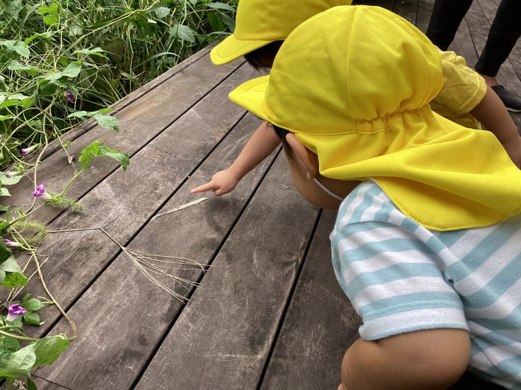 9月に入り、秋の自然探しで園のテラスや近所を探検してきました!