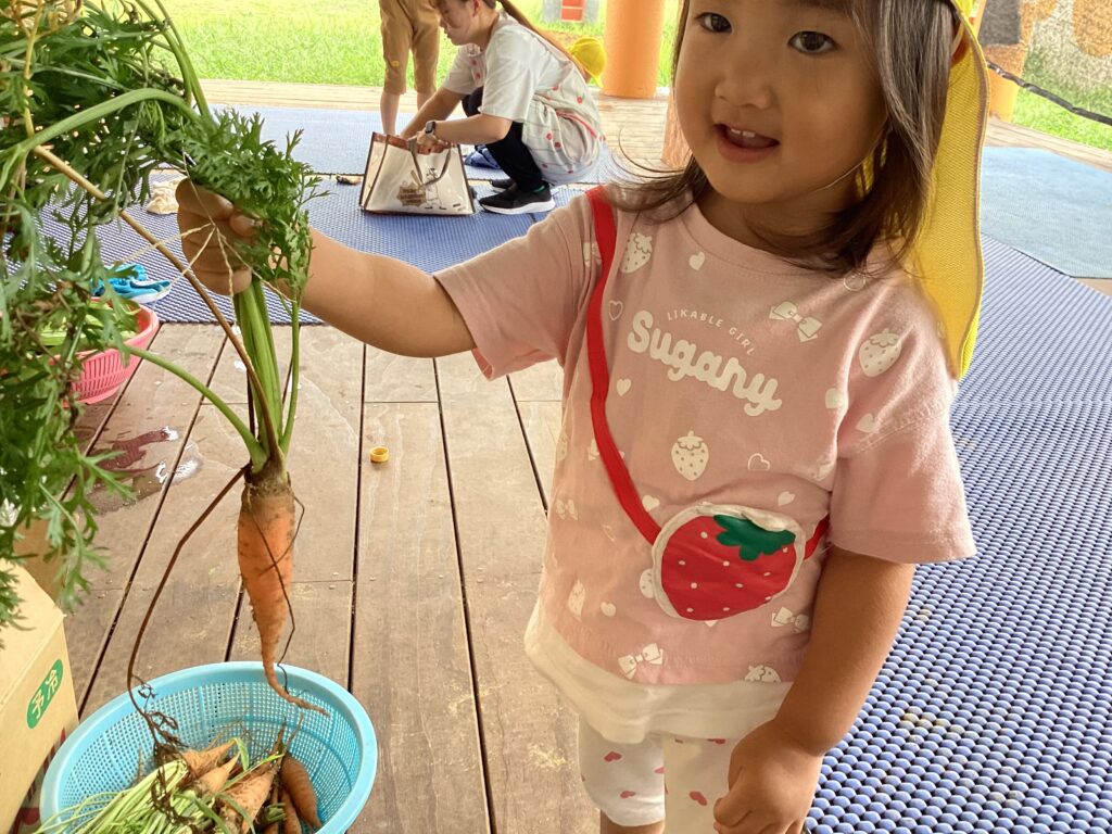 以上児のお兄さんお姉さんが育てた野菜を発見しました。