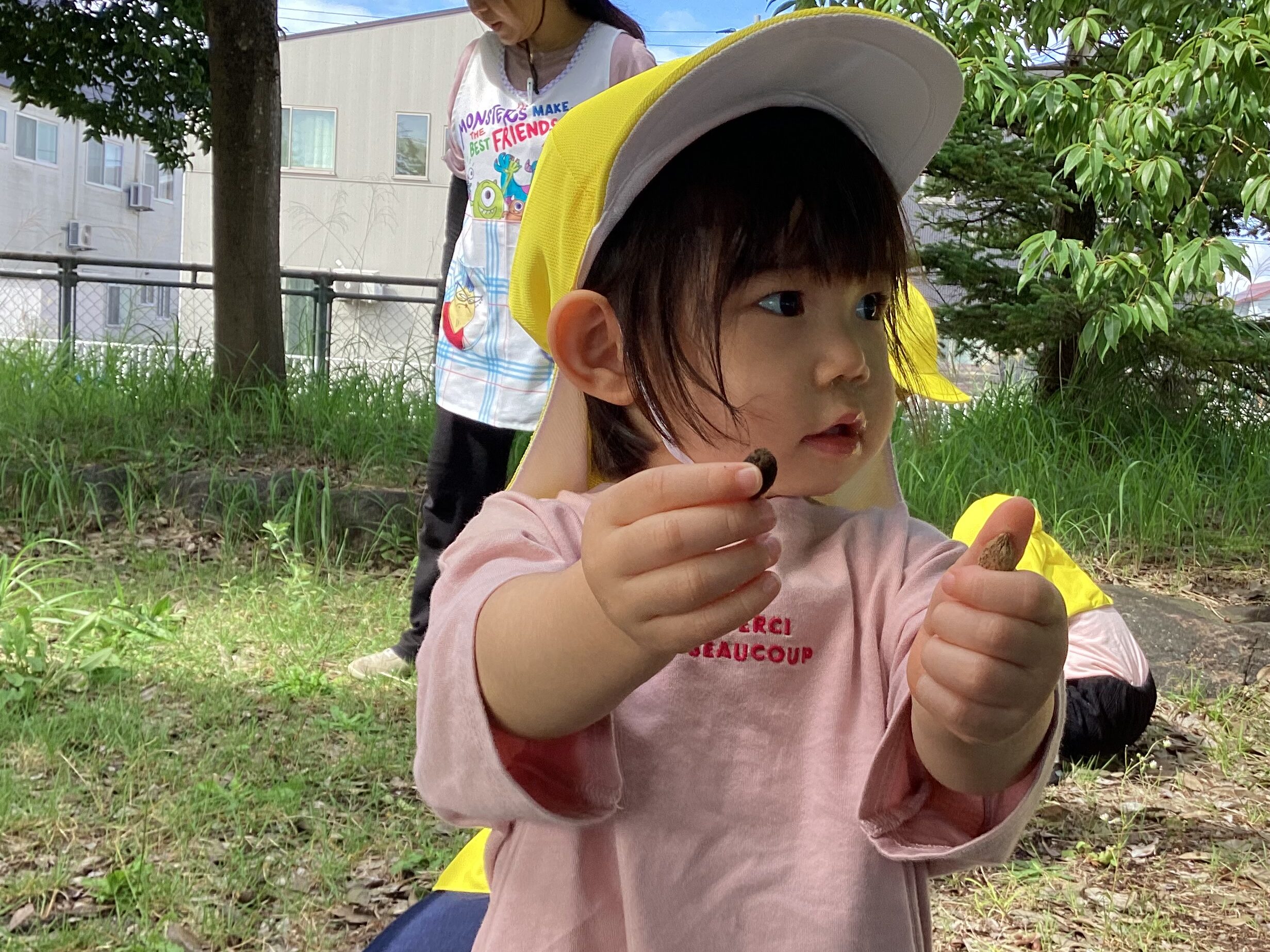 「見て、あったよ!」と自分でどんぐりを見つけることができ、
