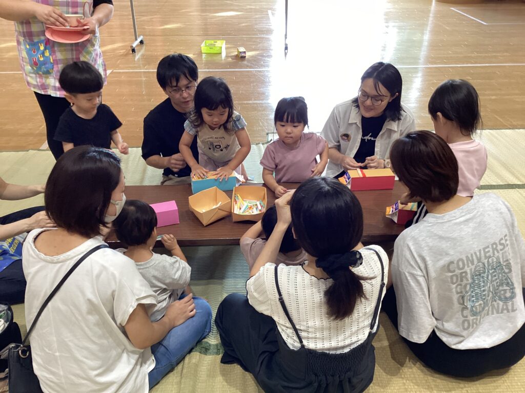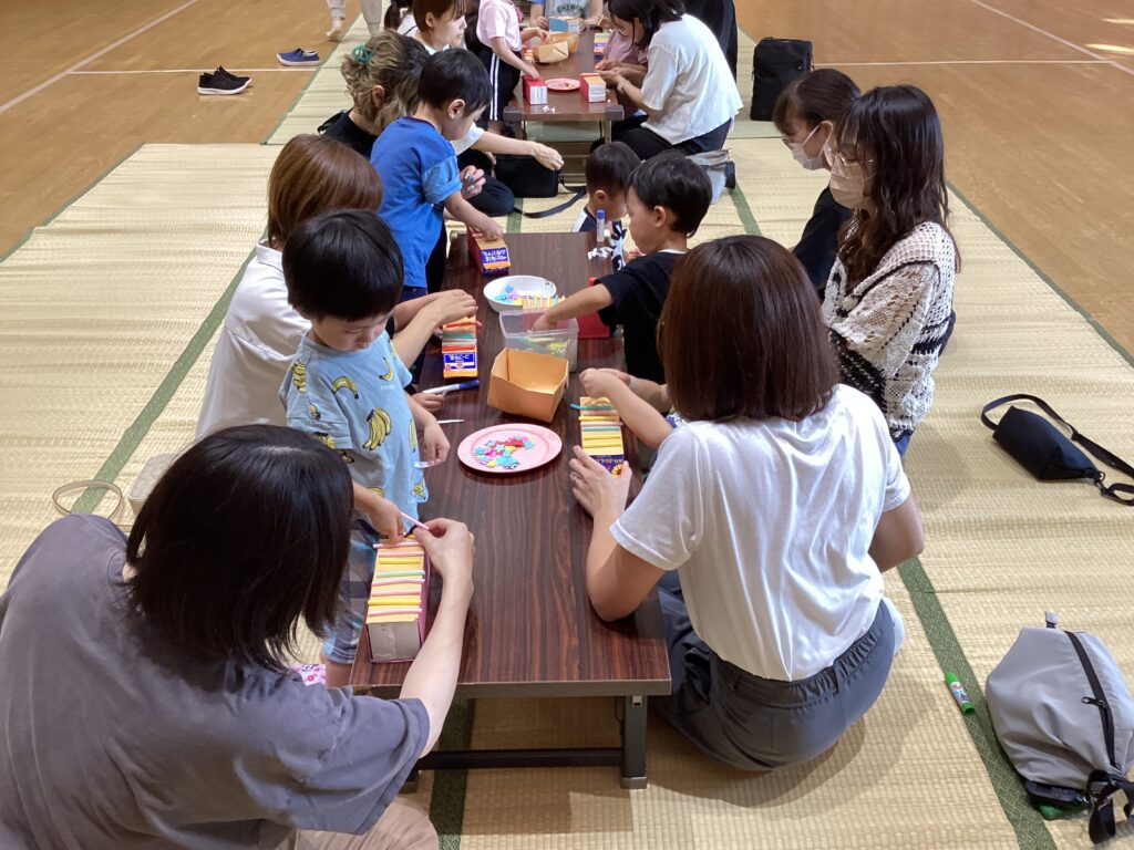 最後は親子で牛乳パックとストローを使って『ギロ(楽器)』作りをしました。